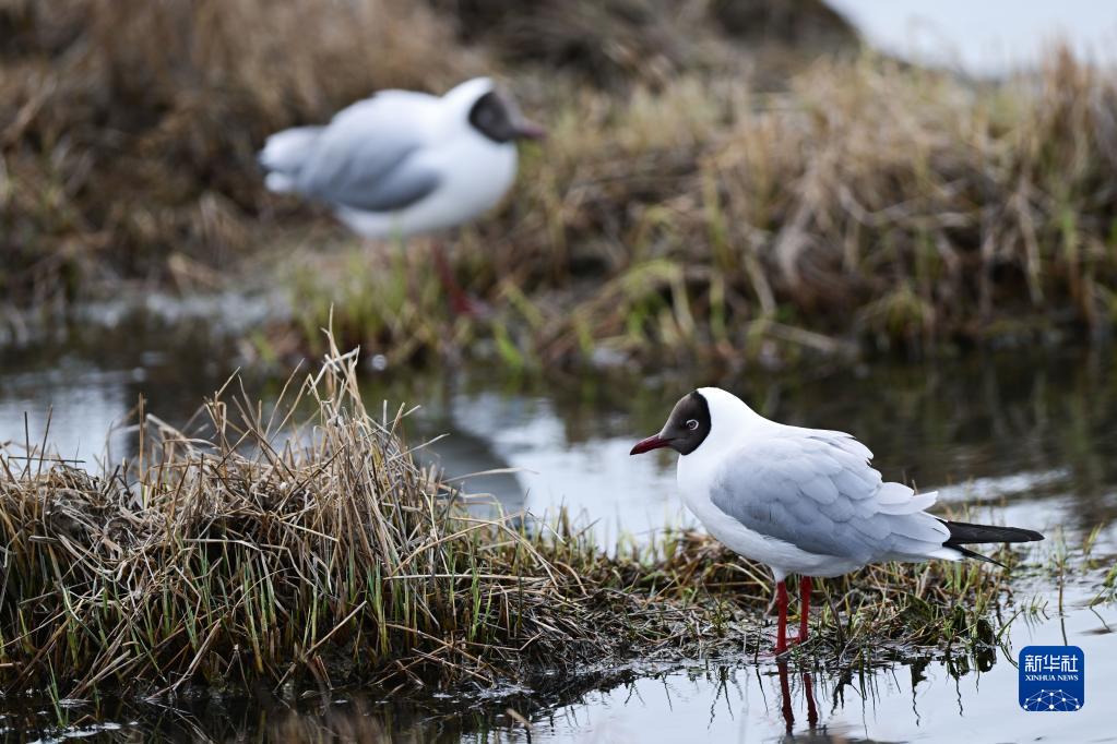 這是5月17日在青海省海北藏族自治州剛察縣境內(nèi)的青海湖仙女灣景區(qū)拍攝的棕頭鷗。新華社記者 李占軼 攝