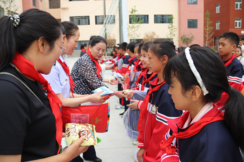 孩子們被節(jié)日前滿載愛心的禮物和祝福感動(dòng),他們?yōu)槲繂柦M的叔叔阿姨戴上鮮艷的紅領(lǐng)巾,小手牽大手留下美好感動(dòng)的時(shí)刻。