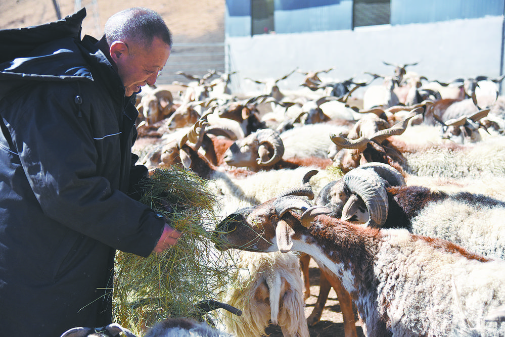 從氣溫變化對(duì)賈洛羊覓食是否有影響到是否導(dǎo)致疾病,從飼草料比例搭配到投喂時(shí)間,一進(jìn)門莫華青便對(duì)每個(gè)飼養(yǎng)環(huán)節(jié)展開了詳細(xì)詢問。2021年當(dāng)?shù)卣鲑Y幫助文格建成了這個(gè)面積達(dá)750平方米的畜牧棚,每年為其提供10噸飼料,解決了他的成本問題。通過專業(yè)培訓(xùn)和技術(shù)員入戶現(xiàn)場(chǎng)指導(dǎo),彌補(bǔ)了技術(shù)短板。采取統(tǒng)一收購(gòu),讓他打消后顧之憂。“以前狼常襲擊羊群,最嚴(yán)重的一次一夜間被狼咬死7只羊羔。現(xiàn)在有了畜棚羊不僅安全了,而且在恒溫條件下羊得病少了,產(chǎn)仔率和成活率都提高了,膘還長(zhǎng)得快?!别B(yǎng)了大半輩子牛羊的文格嘗到了“生態(tài)家庭牧場(chǎng)”的甜頭,去年,他僅靠賈洛羊就掙了近50萬元。