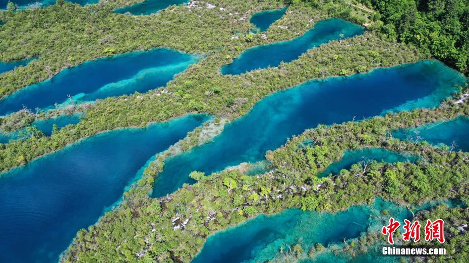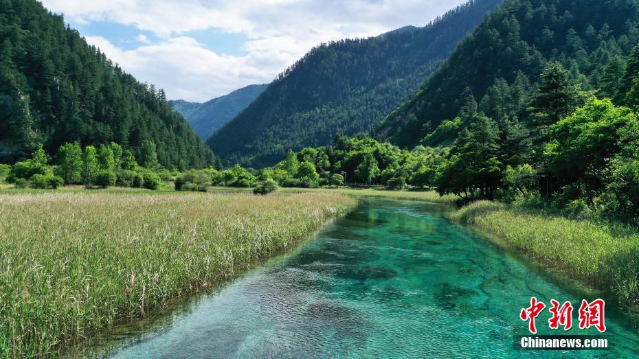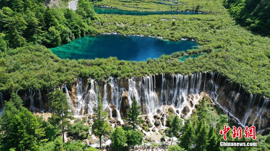6月8日,初夏時節(jié),世界自然遺產地九寨溝景區(qū)風景如畫,吸引眾多游客觀光游玩。安源 攝