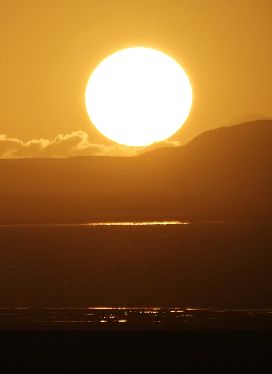 6月17日在可可西里卓乃湖拍攝的落日。新華社記者 薛玉斌 攝