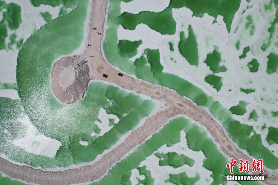 航拍夏日青海茫崖翡翠湖色彩絢麗如油畫(huà)