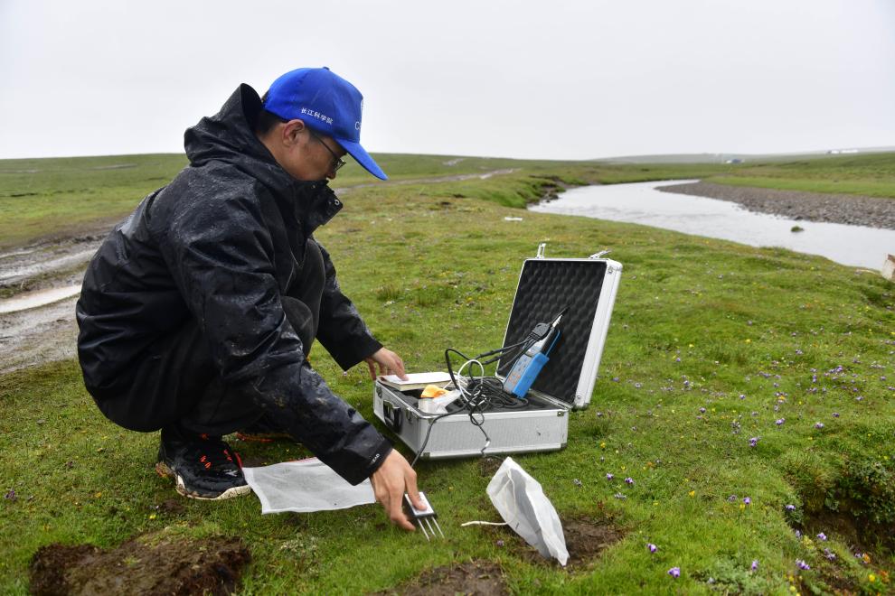連續(xù)第二年來(lái)此考察的長(zhǎng)江科學(xué)院空間技術(shù)應(yīng)用研究所張雙印博士告訴記者,今年他們針對(duì)查旦濕地的科考,以分析濕地“水-土-植被-底泥”的碳含量為主,現(xiàn)場(chǎng)實(shí)測(cè)了水、土監(jiān)測(cè)點(diǎn)的溫度、酸堿度、鹽度等信息,采取了黑泥、黃土、熱熔湖塘水、高寒草甸植被等樣本,為摸清查旦濕地碳儲(chǔ)量“家底”提供寶貴的數(shù)據(jù)支撐。