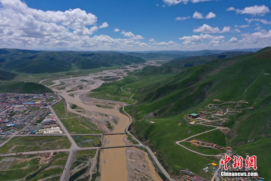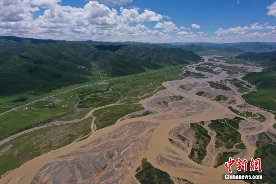 7月28日,航拍青海省果洛藏族自治州達(dá)日縣黃河辮狀水系。果洛州達(dá)日縣平均海拔在4200米以上,盛夏時(shí)節(jié),連綿的山巒披上“綠毯”,黃河流經(jīng)其境內(nèi)后,在開闊平緩的河道中數(shù)十條水流時(shí)而相匯時(shí)而分離,交織出巨型的辮狀水系,在群山和城鎮(zhèn)中蜿蜒流淌,形成獨(dú)特的高原壯美山河圖。