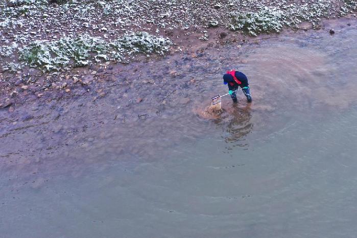 由水利部長(zhǎng)江水利委員會(huì)長(zhǎng)江科學(xué)院牽頭組織的2023年江源綜合科學(xué)考察正在長(zhǎng)江源進(jìn)行,其中魚耳石是新增研究?jī)?nèi)容。為了采集耳石,來自長(zhǎng)江科學(xué)院水環(huán)境所的科考隊(duì)員劉晗頂著大風(fēng)和雨雪,穿著下水褲和隊(duì)友在長(zhǎng)江源區(qū)多條河流中采集魚類樣本,經(jīng)常在冰冷的河水中守候十多分鐘。