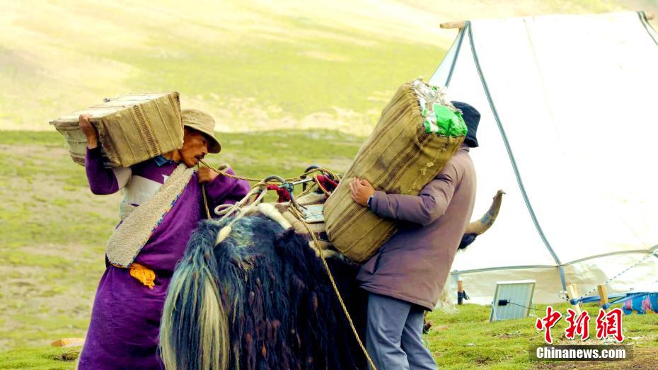 青海湖北岸剛察草原牧民正在運行李。桑吉才讓 攝