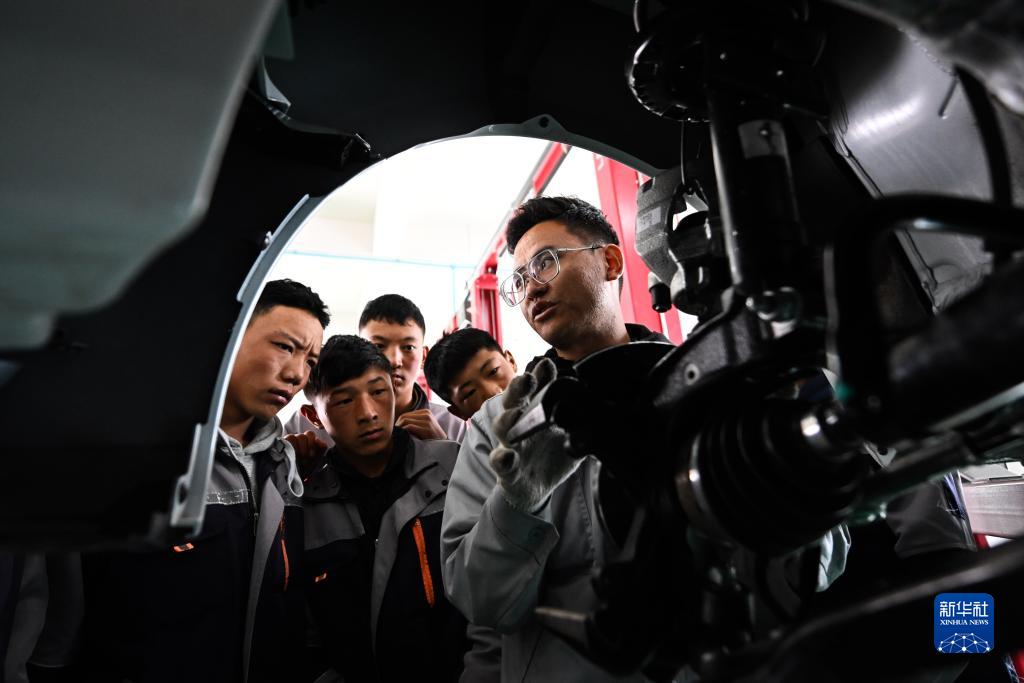 9月8日,在果洛藏族自治州職業(yè)技術(shù)學(xué)校,汽車運(yùn)用與維修專業(yè)學(xué)生在實(shí)訓(xùn)課程上學(xué)習(xí)。新華社記者 張龍 攝