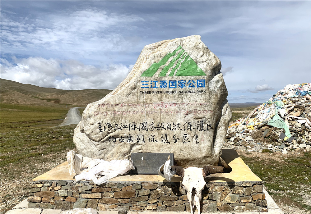 2020年8月27日,青海省玉樹藏族自治州曲麻萊縣境內(nèi)的約古宗列保護(hù)分區(qū)石碑。新華社記者 李琳海 攝