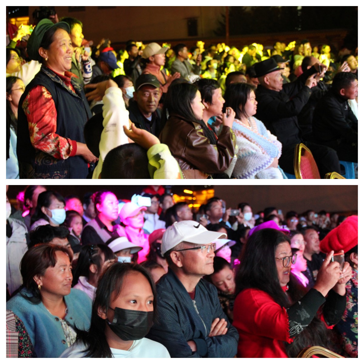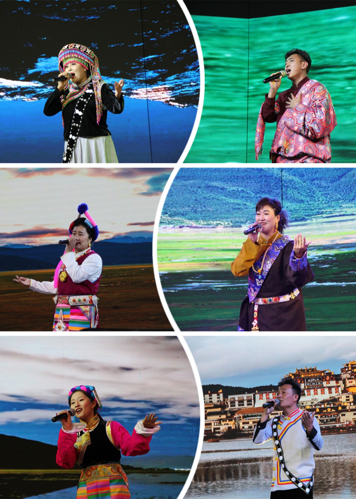 閉幕式現(xiàn)場,優(yōu)秀民間歌手們再次獻上動人的歌曲,為現(xiàn)場觀眾帶來一場古樸、莊重的視聽盛宴?!渡焦鹊幕芈暋贰端筛駩赌贰贰赌徇t目刮》……悠揚的歌聲又一次響徹在獨克宗古城的夜空,現(xiàn)場觀眾也紛紛參與合唱,將現(xiàn)場氣氛推至高潮。最后,活動在合唱《我和我的祖國》中完美落幕。