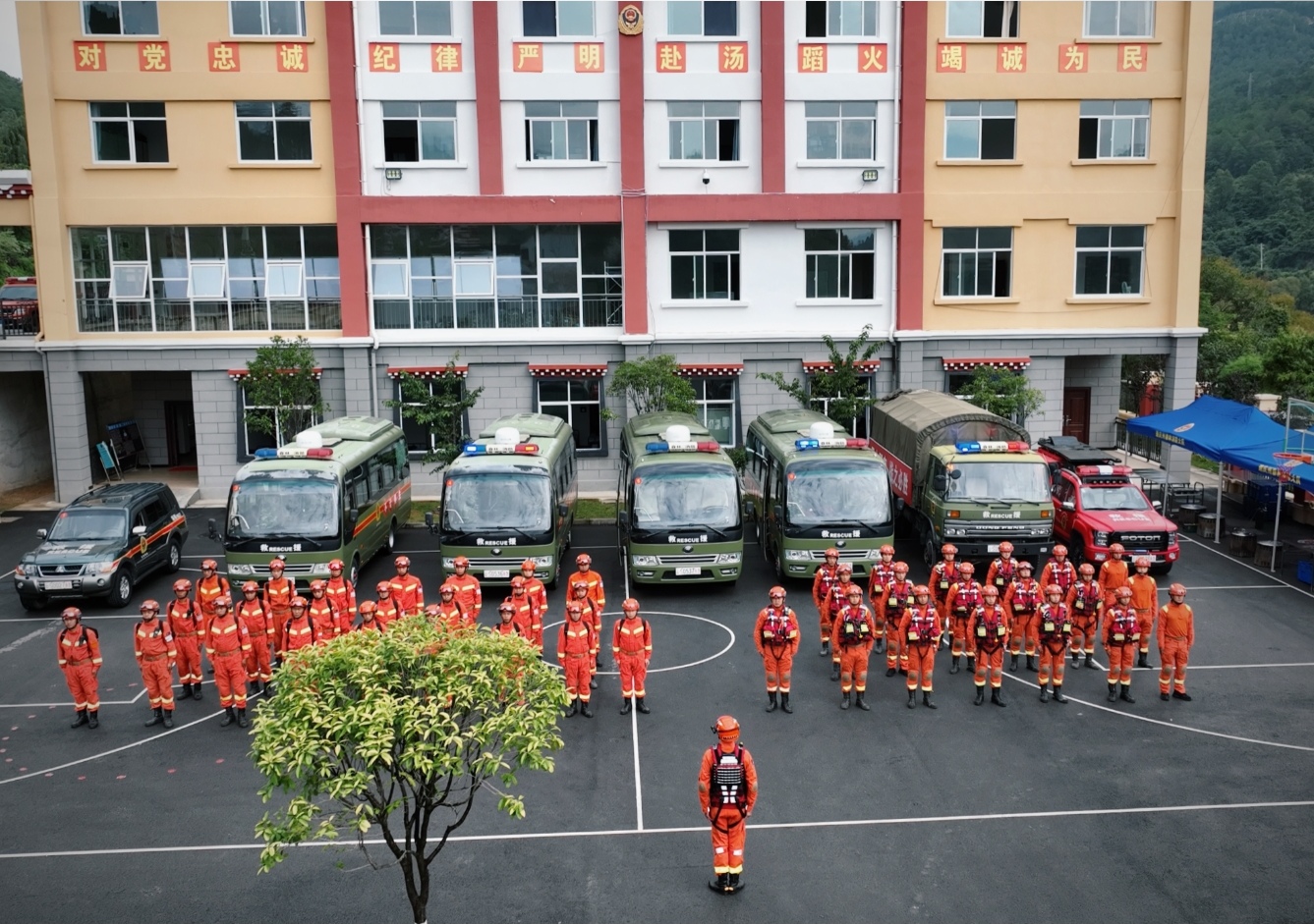 此次演練,以香格里拉市虎跳峽鎮(zhèn)新仁村二組因連續(xù)降雨引發(fā)大規(guī)模山體滑坡,造成臨山5戶25口人生命財(cái)產(chǎn)安全受到嚴(yán)重威脅為背景。大隊(duì)在接到上級(jí)命令后,立即完成戰(zhàn)備轉(zhuǎn)換,人、裝、物迅速集結(jié)到位。
