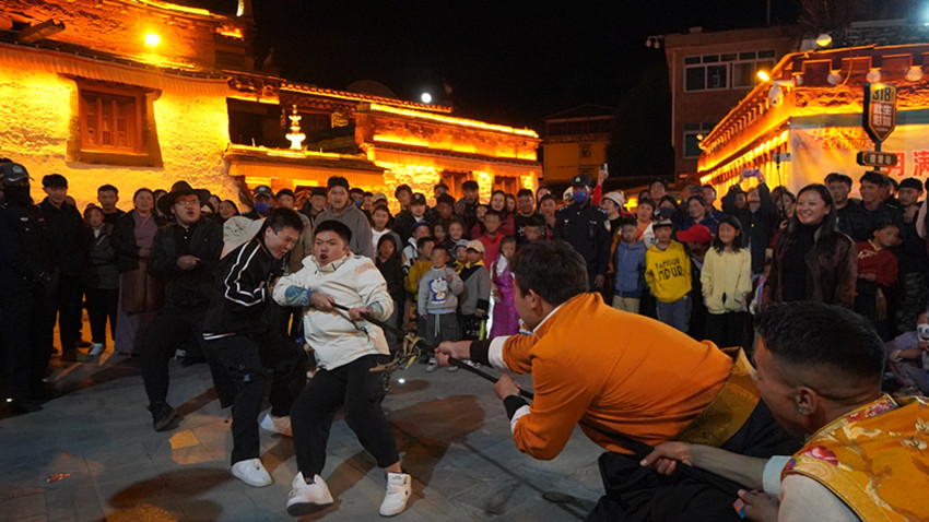 “江流宛轉(zhuǎn)繞芳甸,月照花林皆似霰……”農(nóng)歷八月十五,月色籠罩下的勒通古鎮(zhèn)·千戶藏寨,流淌著中華詩歌的悠悠古韻。9月29日晚,“我們的節(jié)日·中秋”新時(shí)代文明實(shí)踐系列活動(dòng)之“月滿理塘、愛我中華”文藝展演,引得群眾和游客爭相拍照。藏戲舞蹈“扎西雪巴”、藏族踢踏舞讓觀眾領(lǐng)略到濃郁的民族風(fēng)情,詩朗誦伴舞《我愛你,中國》引人入勝……一場場精彩演出展現(xiàn)了傳統(tǒng)文化的多重魅力。