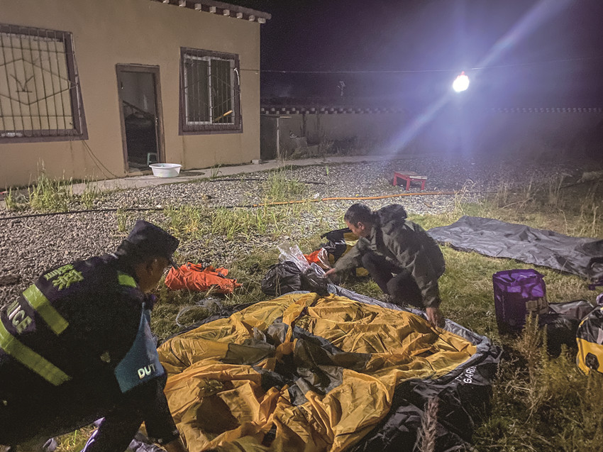 10月2日晚,2名沿國道314線旅游的騎行游客到達(dá)亞青派出所納塔卡點(diǎn)時(shí)天色已較晚,加之對路況不熟悉,想要在附近草原搭帳篷露營??紤]到游客的生命財(cái)產(chǎn)安全,該卡點(diǎn)的民輔警便幫助2名游客在卡點(diǎn)院內(nèi)搭建帳篷,幫助2名游客就地安心休息。