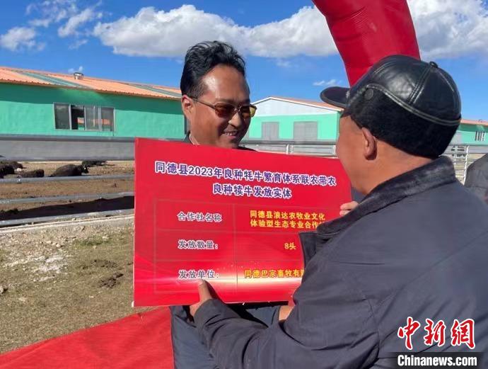 圖為同德縣牦牛產業(yè)園為牧民分發(fā)良種牛犢儀式現場。陳宗淇 攝
