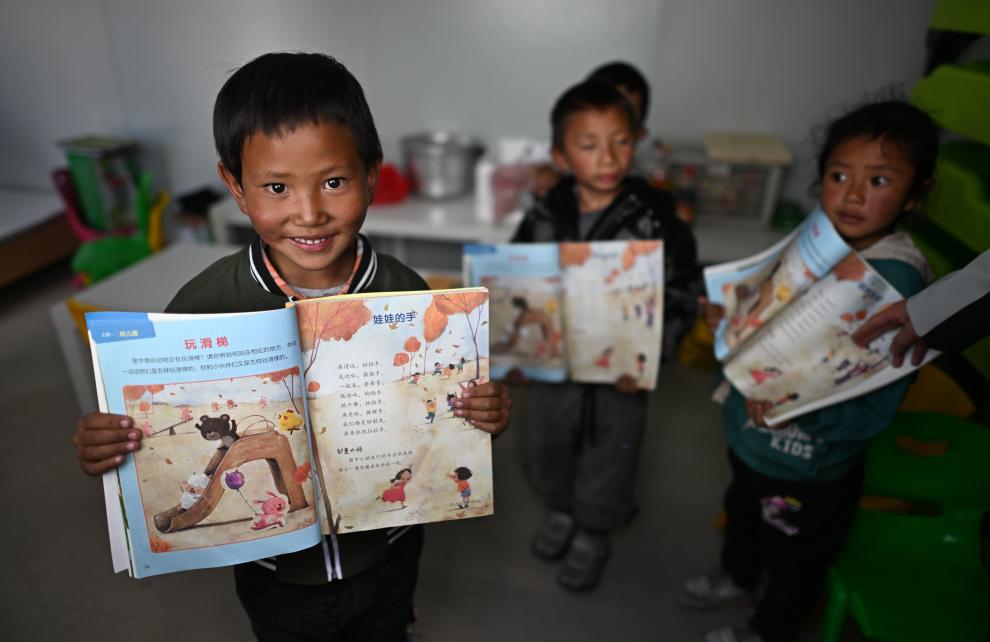 “一直希望孩子可以上幼兒園,但是放牧是家里唯一的收入來源,實(shí)在沒有辦法放棄。如今,政府把幼兒園搬進(jìn)了牧區(qū),孩子在家門口就能上幼兒園?,F(xiàn)在,孩子每天最開心的事情就是上幼兒園。”江永才仁說。