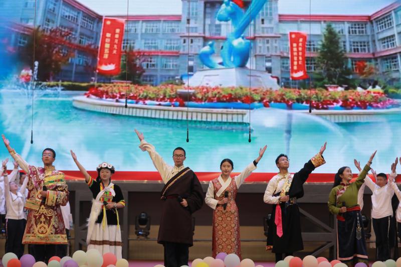 活動中,受邀領導嘉賓、廣大師生共同觀看了州民中40年發(fā)展歷程紀實片《四十芳華桃李情》、民族團結專題片《團結花開香溢雪域》。州民中師生及校友、州歌舞團演員等還為大家?guī)砹司实母栉璞硌?,表達了內心的喜悅,為學校送上祝福。