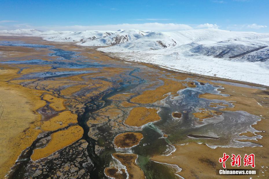 11月15日,航拍青海玉樹隆寶灘國(guó)際重要濕地冬日旖旎景色。降雪過后,位于青海省玉樹藏族自治州玉樹市境內(nèi)的隆寶灘國(guó)際重要濕地連綿的山巒被白雪覆蓋,與金色的草地和蜿蜒的河流交相輝映,景色旖旎。[詳細(xì)] -