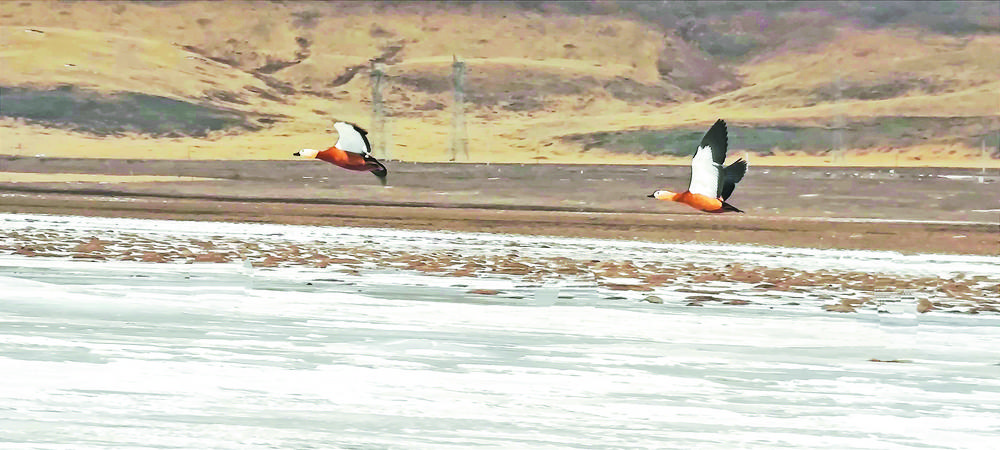 青海隆寶灘國(guó)際重要濕地迎來春天首批赤麻鴨