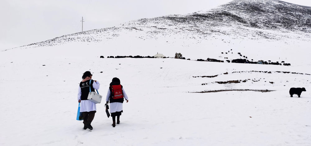 近期,四川省甘孜藏族自治州理塘縣連降大雪,路面結(jié)冰,交通不便,導(dǎo)致居住在海拔4000多米遠(yuǎn)牧區(qū)的牧民遇到看病難等問(wèn)題。理塘縣村戈鄉(xiāng)中心衛(wèi)生院組織家庭醫(yī)生團(tuán)隊(duì),冒著風(fēng)雪前往遠(yuǎn)牧區(qū),為慢性病患者、孕產(chǎn)婦、老年人及小孩等送醫(yī)送藥。