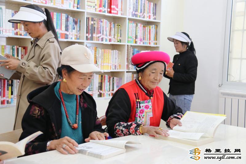 在香格里拉市建塘鎮(zhèn)北郊社區(qū)農(nóng)家書(shū)屋,身著民族服飾的老人們安靜地翻閱著各類書(shū)籍?!断愀窭锢h志》《中醫(yī)養(yǎng)生》《家常菜做法大全》等書(shū)籍讓老人們沉浸在知識(shí)的海洋里。