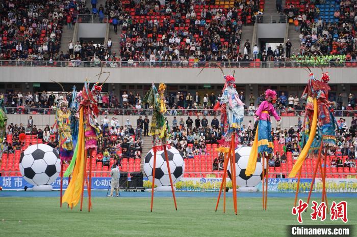 圖為開幕式現場社火高蹺進行表演。馬銘言 攝