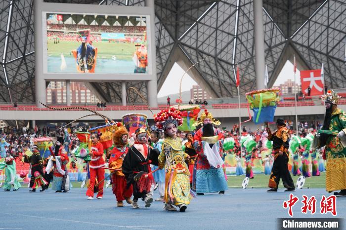 圖為開幕式現場進行青海民俗表演。馬銘言 攝