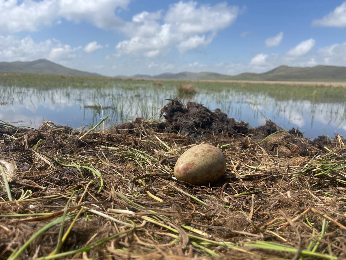 今年3月中旬,首批在云貴高原越冬的黑頸鶴來到若爾蓋濕地國家級自然保護(hù)區(qū),在保護(hù)區(qū)進(jìn)行新一輪適應(yīng)和筑巢后,迎來了繁育期。這對正在產(chǎn)卵的黑頸鶴夫婦是當(dāng)?shù)氐摹袄吓笥选保衲暌咽撬鼈冊诖诉B續(xù)繁育的第五個(gè)年頭。