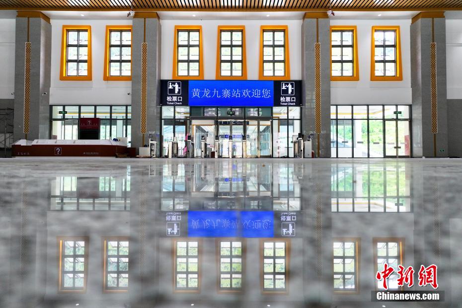 圖為7月7日拍攝的川青鐵路黃龍九寨站候車大廳一角。(無(wú)人機(jī)照片)中新社記者 劉忠俊 攝