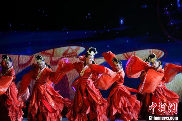 圖為晚會現(xiàn)場進行舞蹈表演《絲路錦繡》。中新社記者 馬銘言 攝
