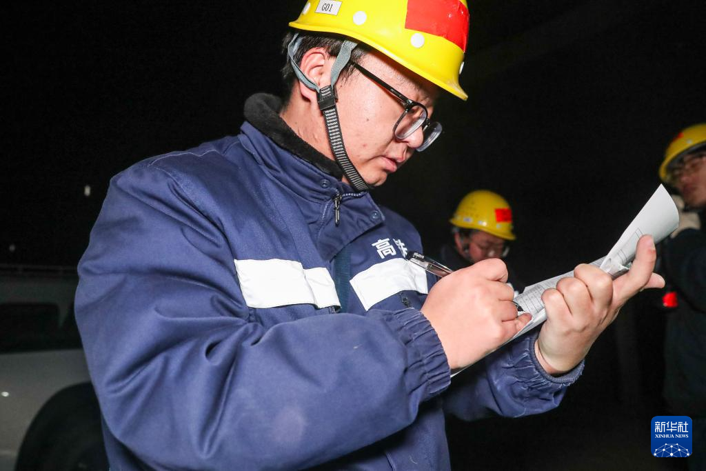 1月14日凌晨,安全員在新烏鞘嶺隧道內(nèi)對(duì)作業(yè)過程進(jìn)行盯控。新華社記者 郎兵兵 攝