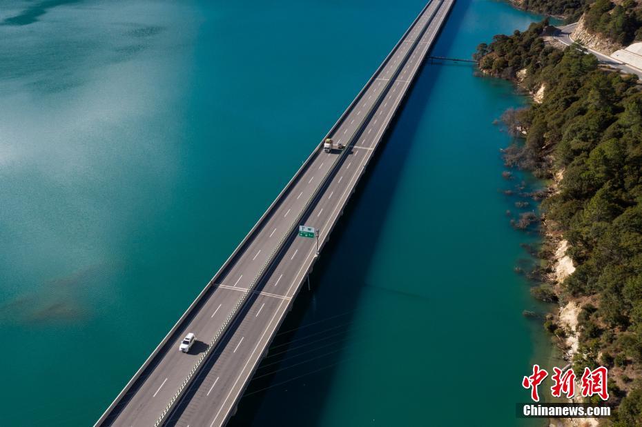 作為西藏目前“顏值最高”的高等級公路,拉林高等級公路在林芝市境內(nèi)的多布特大橋路段又被譽(yù)為西藏“最美水上公路”,公路橫跨湛藍(lán)的水面,顏值爆表。 何蓬磊 攝