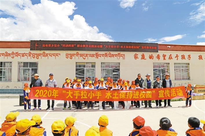 圖為西藏自治區(qū)水土保持局組織開展2020年“大手拉小手 水土保持進(jìn)校園”宣傳活動(dòng)現(xiàn)場(chǎng)。