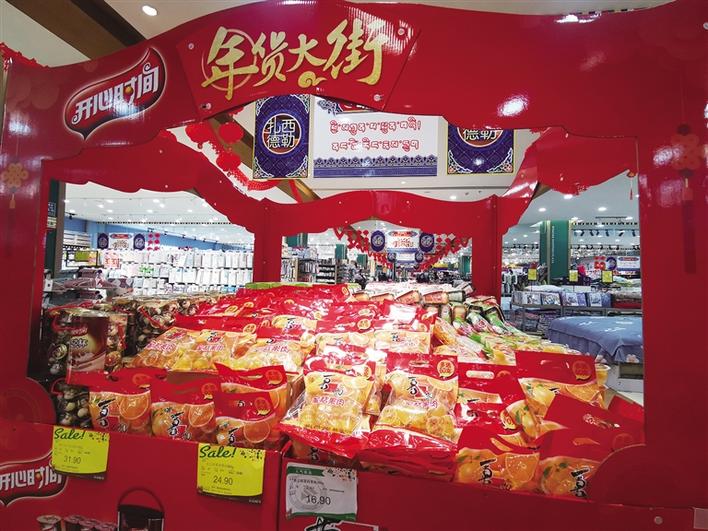 隨后,記者來到娘熱路的哈達(dá)購物廣場,超市里掛起的大紅燈籠和播放的“恭喜發(fā)財”、“歡樂過大年”等音樂,給商場增添了不少喜慶,而來這里采購年貨的人也不少!過年備什么年貨,吃什么好吃的,這是大家最為關(guān)心的事情。記者看到,超市里堆滿了各種各樣的零食大禮包、糖果、飲料。除了零食糖果,風(fēng)干肉、香腸、臘肉等這些過年餐桌上必不可少的年味,早已經(jīng)放上貨架等待市民選購。