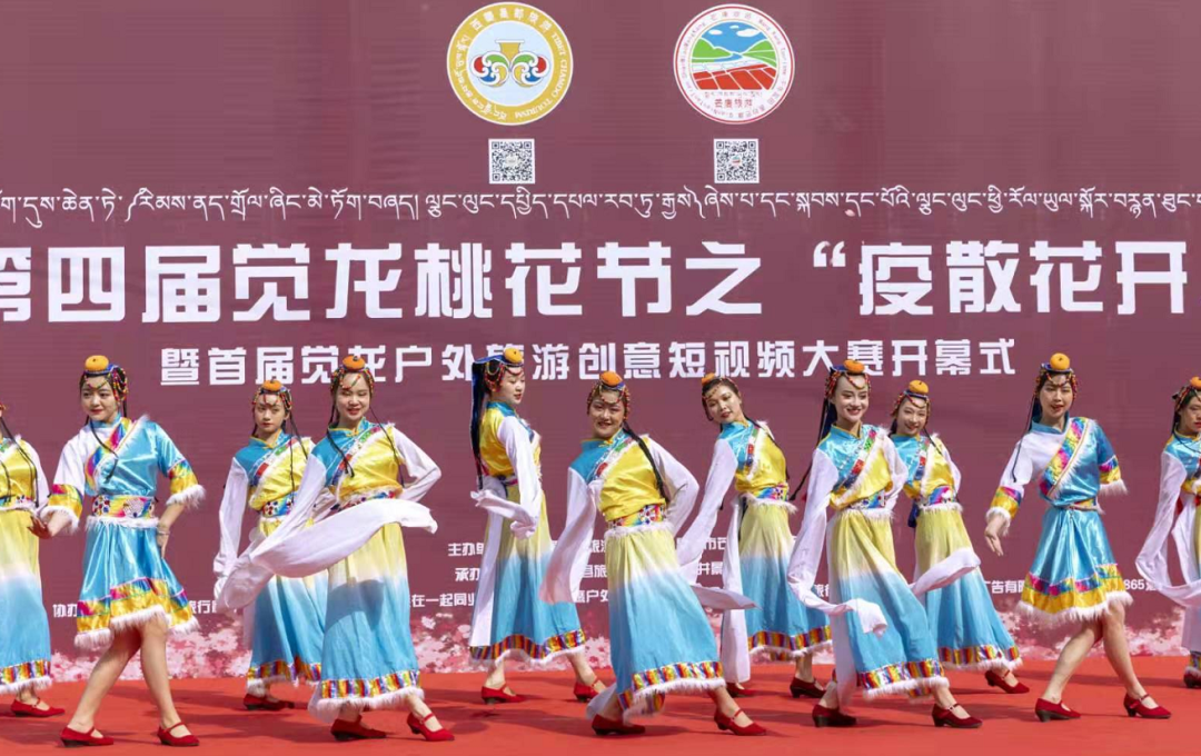 4月3日活動正式開幕,開幕式上,昌都市人大常委會主任、黨組書記,芒康縣委書記齊應海宣布活動開幕,并為納西民族鄉(xiāng)覺龍村頒授了《全國鄉(xiāng)村旅游重點村》獎牌。昌都市旅游發(fā)展局副局長蔡慶,芒康縣委常委、常務副縣長杜晨光出席開幕式并致辭。麗江藝術團和芒康藝術團帶來的歌舞《吉祥謠》《福滿昌都》《崗拉梅朵》等精彩紛呈的表演為在場觀眾帶來了一場歌舞盛宴。開幕式后,游客們循著山谷中遍野的桃花,漫步山野田間,記錄著每一個美麗的瞬間。出了覺龍溝,大家在扎古西大峽谷參觀了文成公主廟和崗達寺,傍晚在云曲莊園大家圍著篝火跳起了歡快的舞蹈。