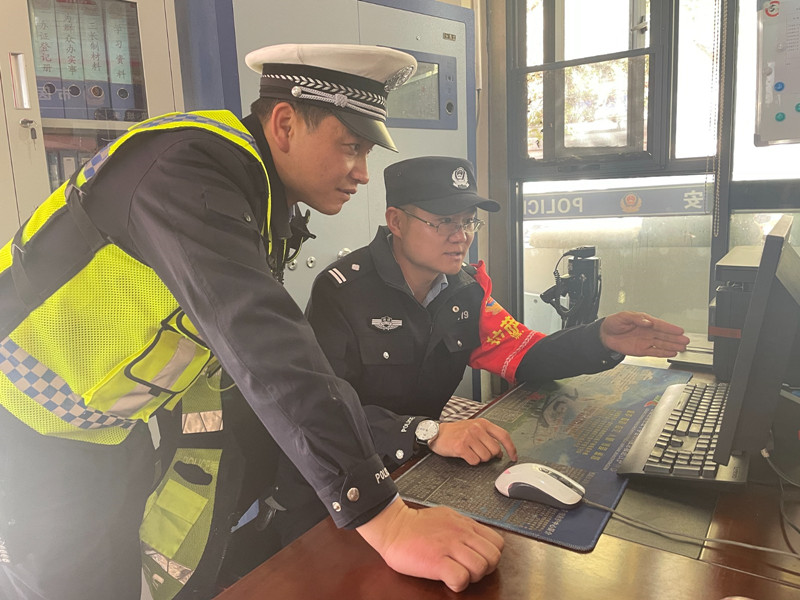 交警和警務(wù)站民警通過視頻巡查路面車輛通行情況。