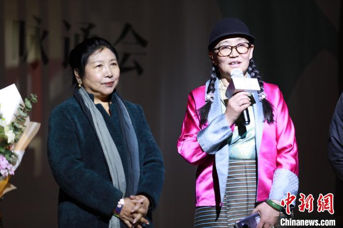 圖為《雪域萱歌》總策劃王淑(右)發(fā)言。葉彬 攝