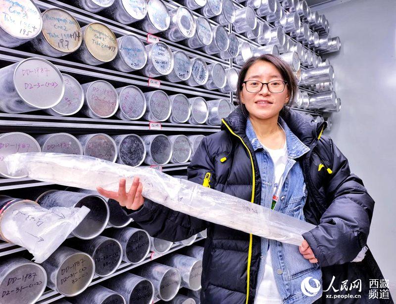 工作人員展示冰芯。人民網 李海霞攝