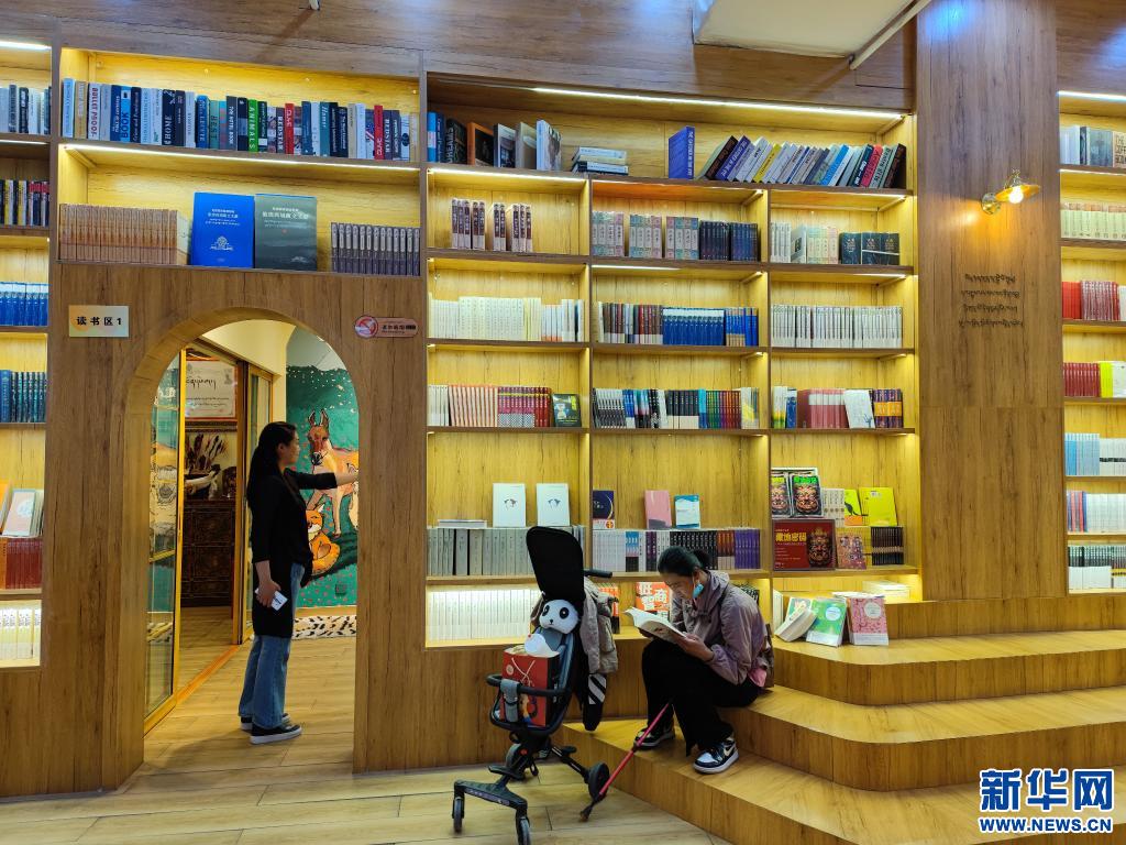“閱讀與人生相伴,書香與夢想齊飛”。走在拉薩市宗角祿康公園北側(cè),這副對聯(lián)映入眼簾。走進書屋,只見各式書籍整齊排列,桌子上擺放著報紙和雜志。61歲的貢嘎挑選了一本藏語讀物,坐在靠門的位置,享受自己的閑暇時光。
