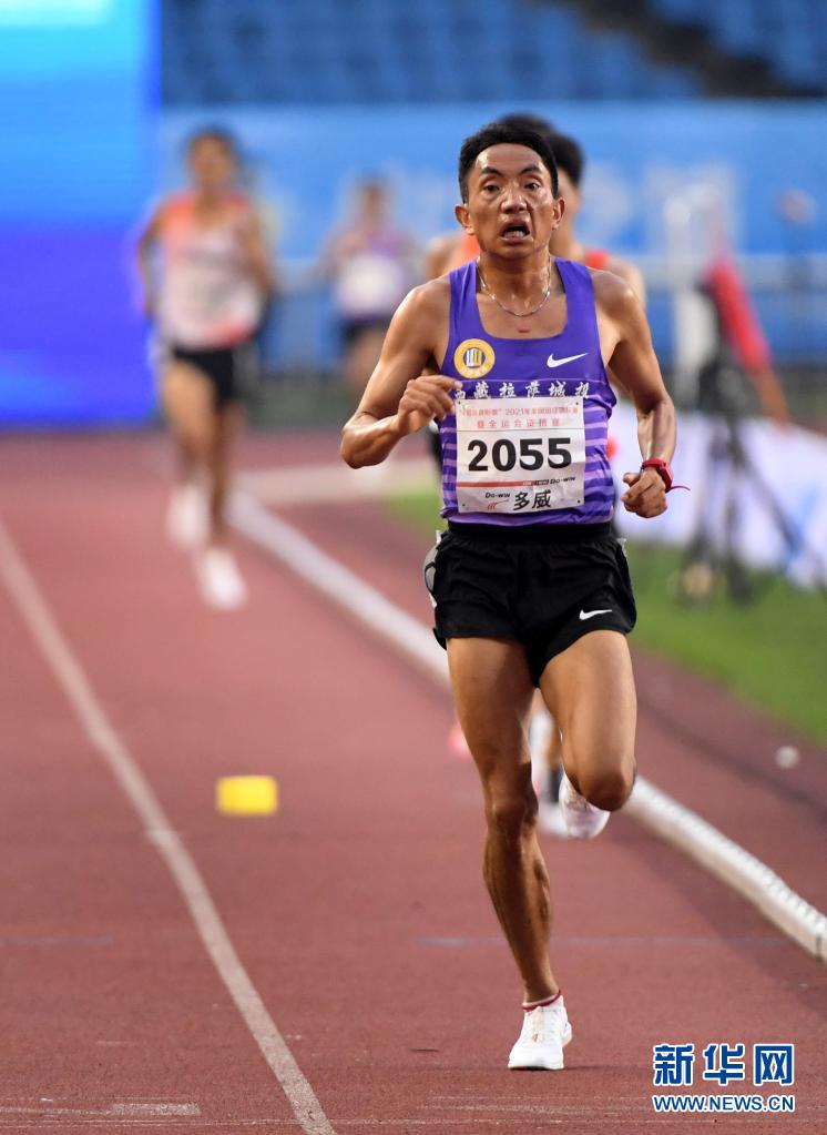 6月25日,在重慶市奧林匹克體育中心舉行的2021年全國(guó)田徑錦標(biāo)賽暨全運(yùn)會(huì)資格賽男子5000米決賽中,西藏拉薩城投隊(duì)選手多布杰以14分03秒52的成績(jī)獲得冠軍。