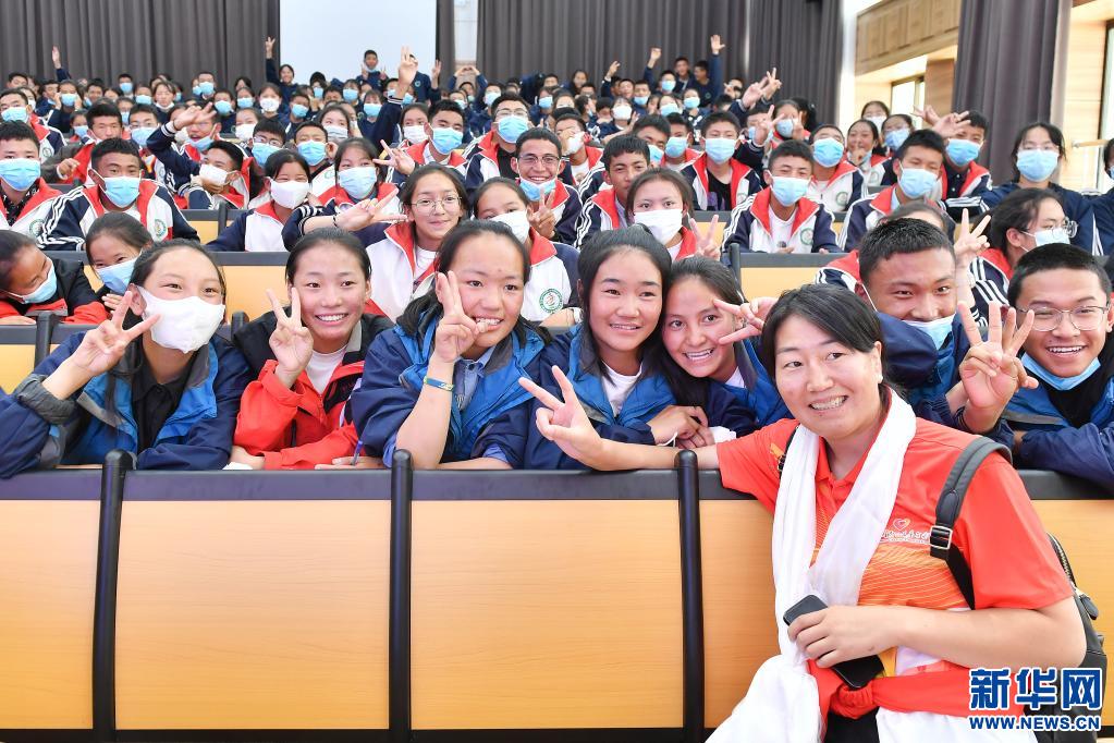 當日,高敏攜西藏和平解放以來首個競技體育世界冠軍、摔跤運動員西洛卓瑪和成功登頂七大洲最高峰并徒步到達南北極點的西藏登山運動員德慶歐珠走進拉薩市阿里高級中學。該校在校學生均來自距拉薩超過1000公里的阿里地區(qū)。由于當?shù)貧夂驐l件惡劣,交通不便,學校遷往拉薩,讓許多高海拔偏遠地區(qū)的學生享受到了更優(yōu)質(zhì)的教育條件。