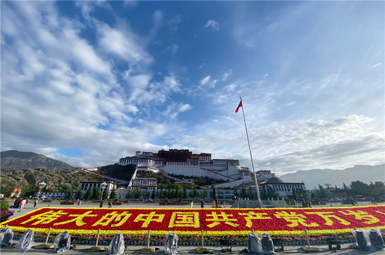 七一”前夕,走在拉薩街頭,慶祝建黨100周年的主題標(biāo)識(shí)隨處可見(jiàn),布達(dá)拉宮廣場(chǎng)裝點(diǎn)一新,宗角祿康公園花團(tuán)錦簇,處處洋溢著喜迎建黨百年的濃烈氛圍。為熱烈慶祝中國(guó)共產(chǎn)黨成立100周年,全市主次干道、門(mén)戶(hù)立交、公園、廣場(chǎng)等地大型主題雕塑、立體花雕、地面擺花為主要表現(xiàn)形式,營(yíng)造建黨百年的濃烈氛圍,美麗拉薩煥然一新,慶祝百年華誕。