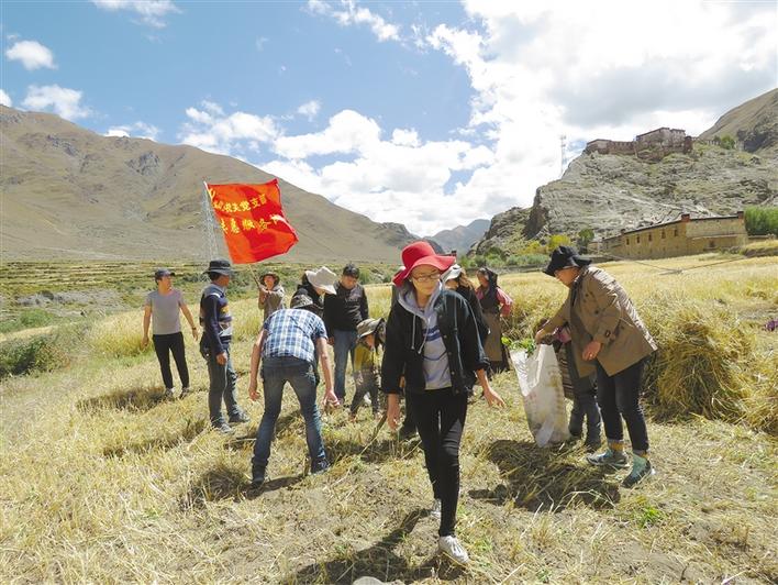 圖為西藏自治區(qū)日喀則市達那鄉(xiāng)開展黨員助農(nóng)秋收志愿服務(wù)活動。