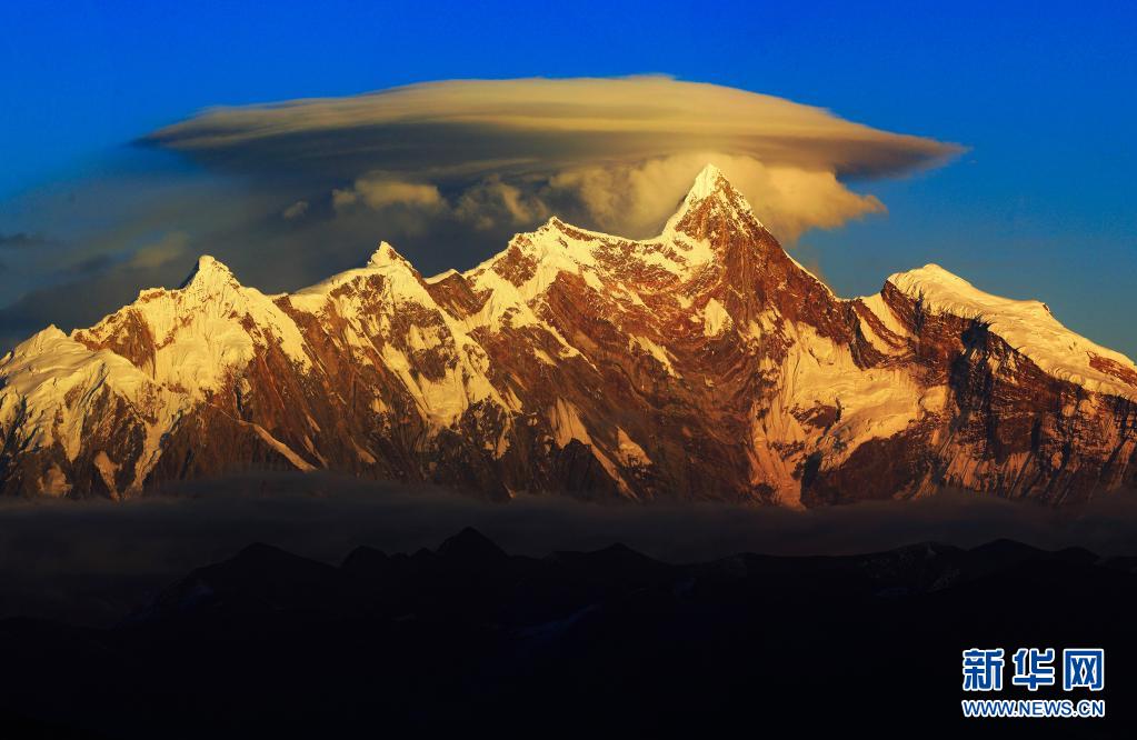 這是2017年12月24日拍攝的夕陽(yáng)下的南迦巴瓦峰。新華社發(fā)(欒遠(yuǎn)春 攝)