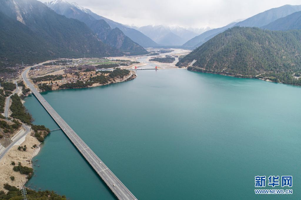 這是4月4日拍攝的拉林高等級(jí)公路(無(wú)人機(jī)照片)。新華社記者 孫非 攝