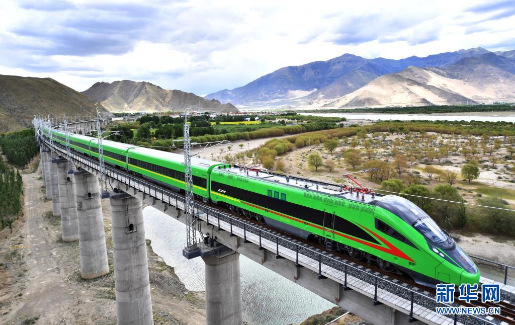 這是6月16日拍攝的行駛在拉林鐵路上的復(fù)興號(hào)列車。新華社記者 覺(jué)果 攝