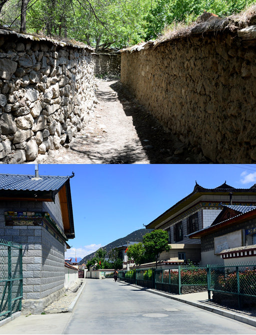 巴吉村新(下)舊(上)村貌對比。巴宜區(qū)委宣傳部供圖