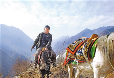 楊年華騎馬深入農(nóng)牧區(qū)采訪。