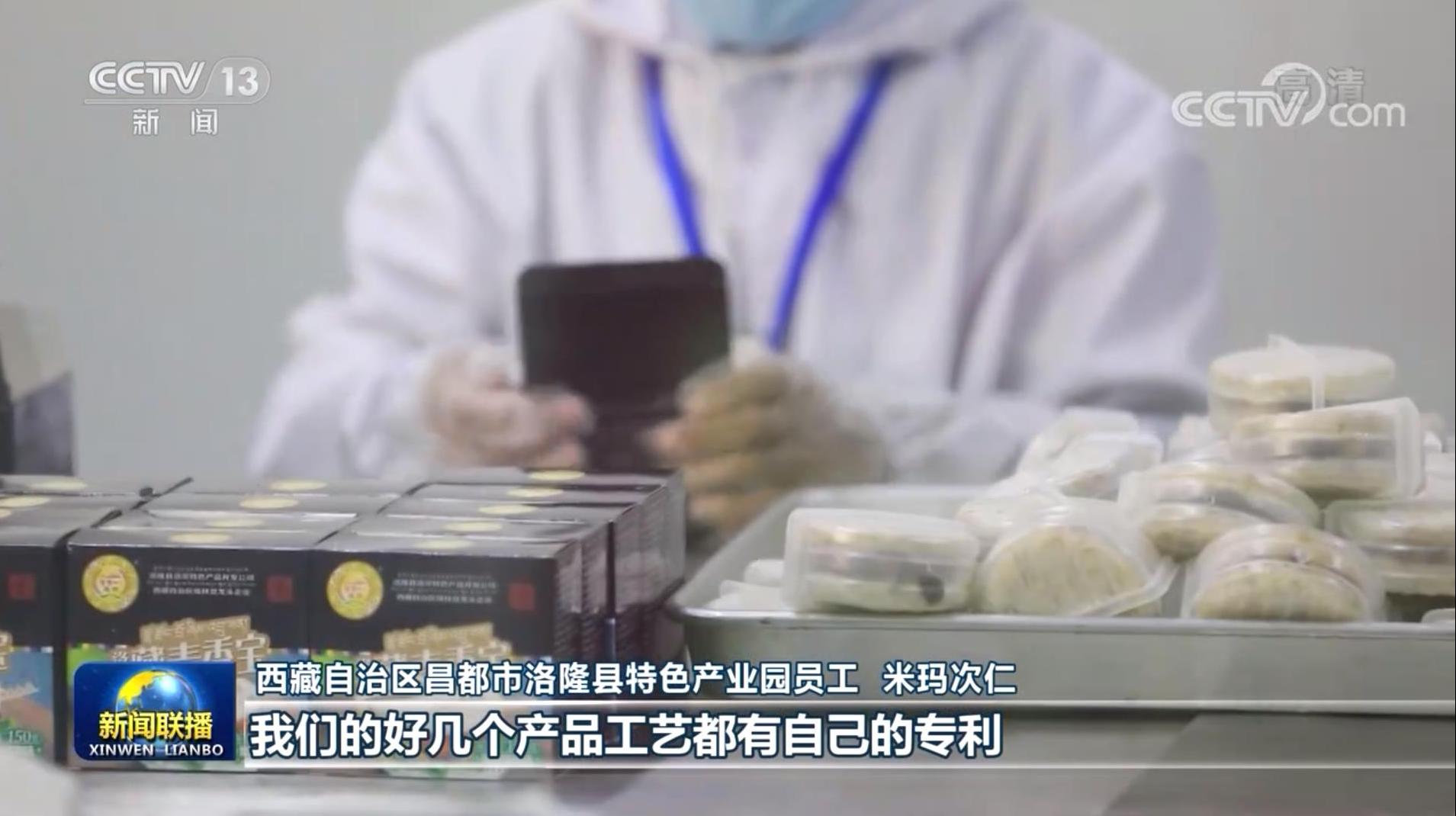 西藏自治區(qū)昌都市洛隆縣特色產(chǎn)業(yè)園員工 米瑪次仁:這是我們公司生產(chǎn)的青稞漢堡,已經(jīng)成為西藏航空食品,非常受歡迎。 我們的好幾個產(chǎn)品工藝都有自己的專利。