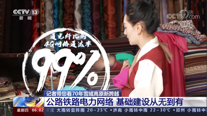 70年來,西藏已實現(xiàn)主電網(wǎng)全區(qū)覆蓋,建成多能互補的綜合能源體系。如今,從珠峰之巔到金沙江畔,從羌塘草原到邊境村鎮(zhèn),西藏全部建制村通光纖比例、4G網(wǎng)絡通達率均達99%,現(xiàn)代通信正讓西藏的百姓聯(lián)通世界。
