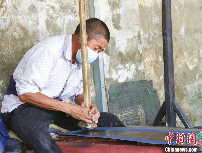 在拉薩市尼木縣,手藝人正在加工雪拉藏紙。冉文娟 攝