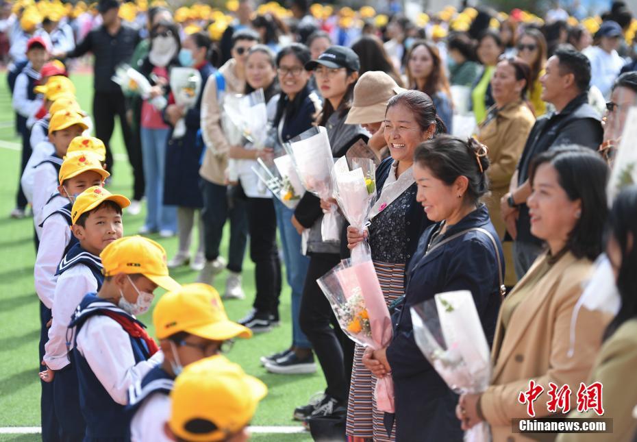 9月10日是第37個教師節(jié),西藏拉薩市第一小學舉行了以“譜團結(jié)新篇 育桃李芬芳 感教師恩情”為主題的慶?;顒印W生以敬禮、獻花、擁抱等方式,表達對老師的感恩之情。中新社記者 貢嘎來松 攝